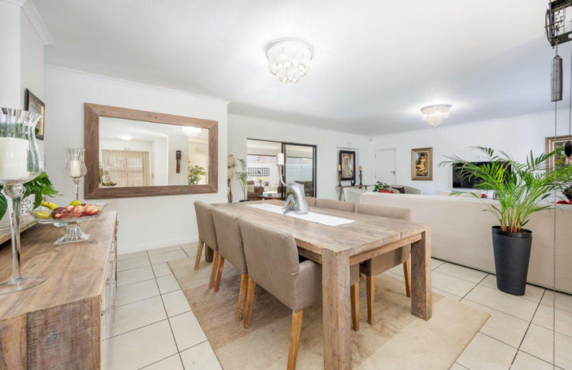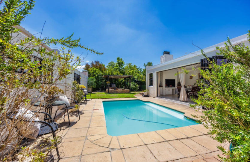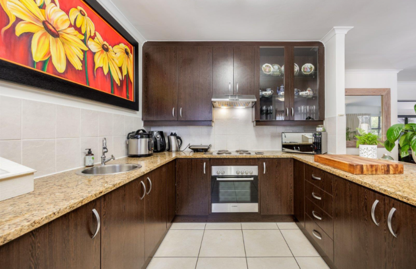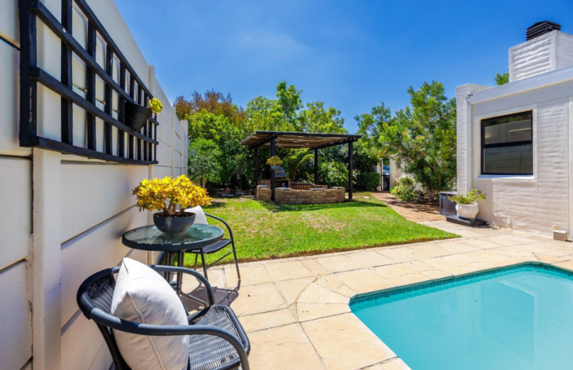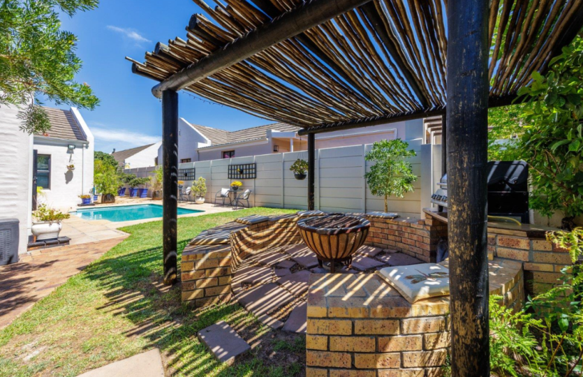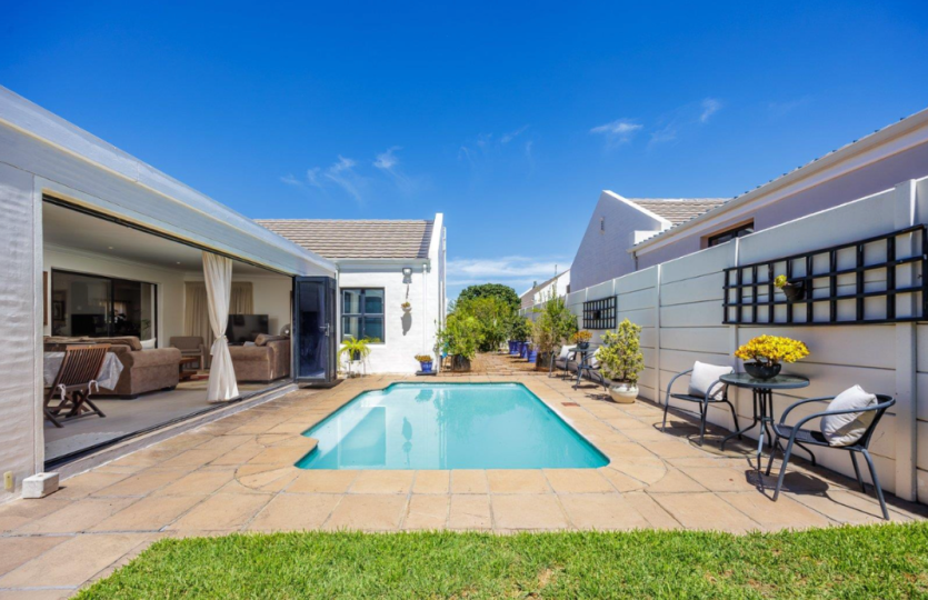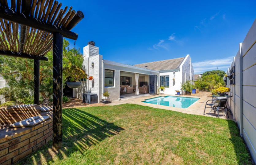Oakwood is one of the most sought after security estates in Pinehurst. It offers 24/7 security, a safe walking environment and beautiful parks for the children to play in. This 3 bedroom home boasts of 3 large bedrooms, the main bedroom has an air conditioner as well as en-suite bathroom. The open plan living area consists of kitchen(with separate scullery) dining room and lounge, with a study. The enclosed braai room runs off the lounge and has stunning stacking doors opening out into a magical enclosed back garden with swimming pool. The double garage has direct access into the house. Pets only allowed at owners discretion.